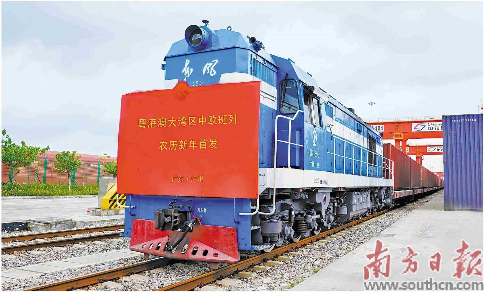 南方日报讯 (记者/刘倩 袁佩如 通讯员/李慧 邓颖晖 刘胜昊)祥龙辞岁去,灵蛇纳福来。正值农历大年初一,1月29日上午8时许,满载着854吨“湾区优选”货物的X8426次中欧班列缓缓驶出广铁集团广州国际港站,向着欧洲疾驰而去,这是蛇年春节期间粤港澳大湾区发出的首趟中欧班列。